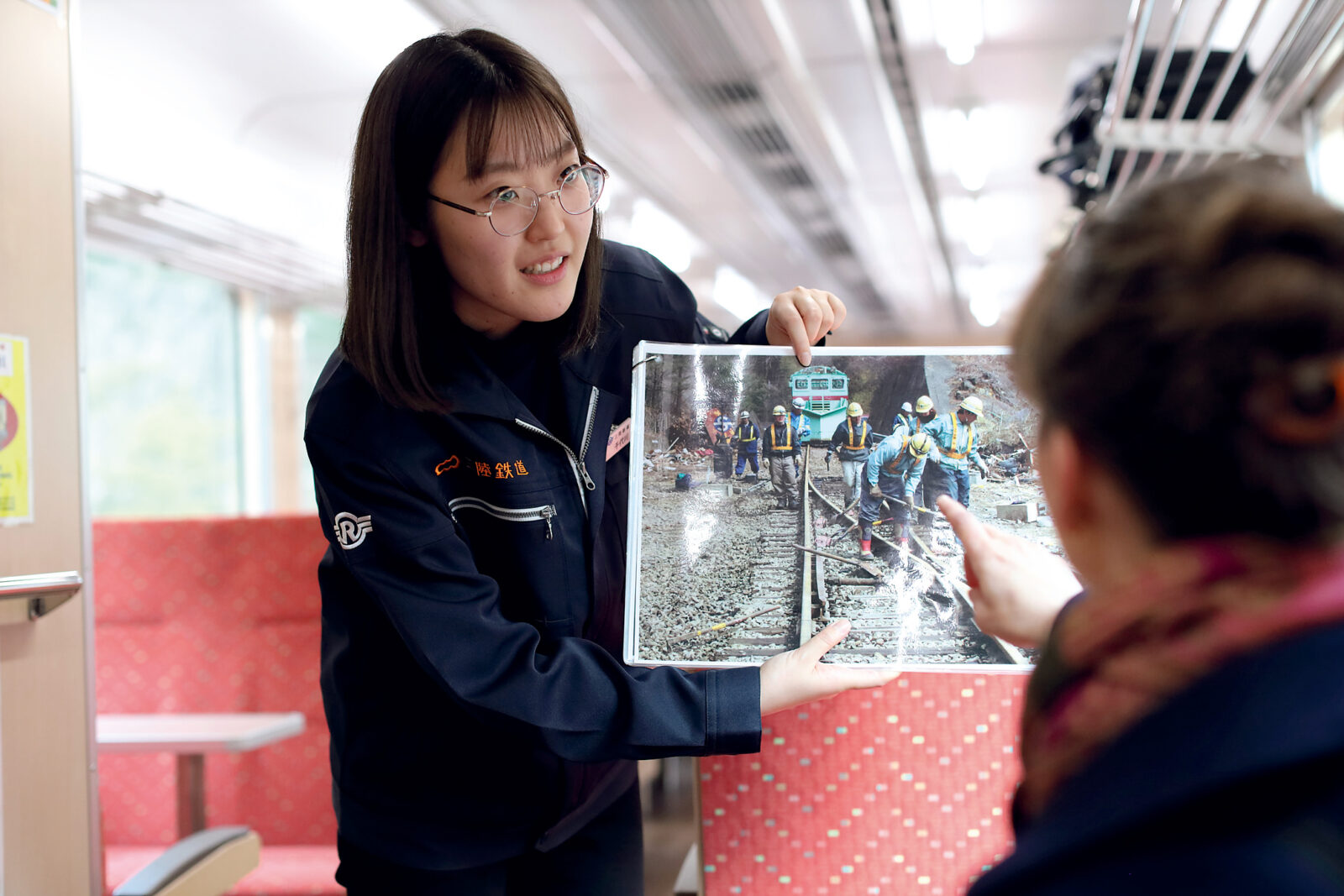 She explains that before 3.11, the railway operated separate north and south lines along the coast, with the section between Kamaishi and Miyako run by Japan Rail (JR). The tsunami caused extensive damage to both systems, after which a decision was made that would reshape the transportation network. Instead of rebuilding the JR line, the Sanriku Railway would take it over, connecting north and south into one continuous line: the Rias Line.