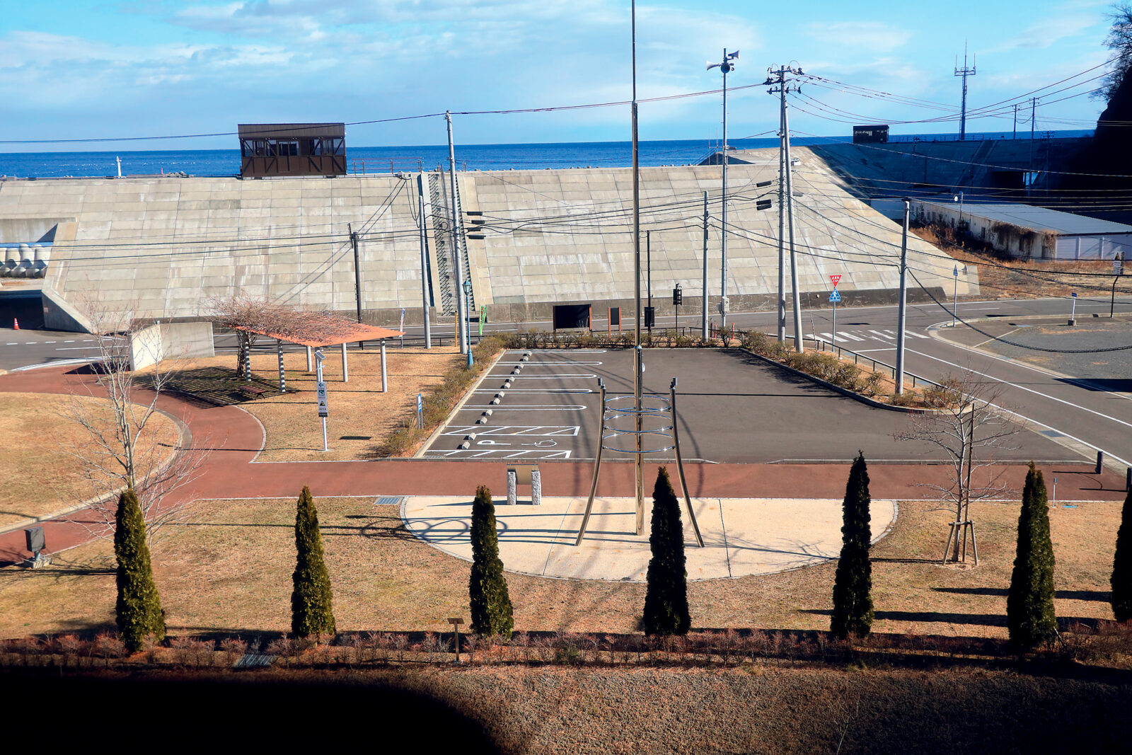 6. A seawall and the ocean beyond. The view from Shimanokoshi Station reflects everyday life as well as memories of the tsunami.
