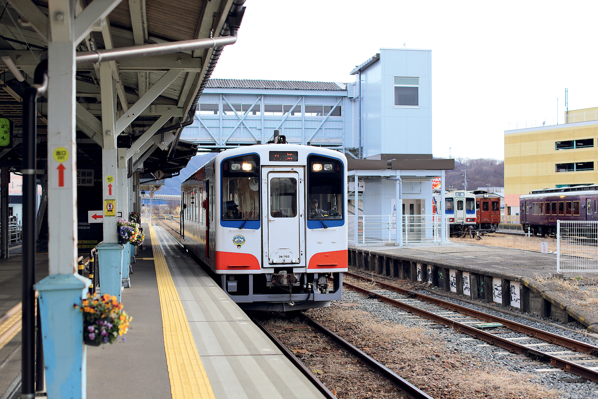 1. A train arrives at Miyako Station. This railway, which is also a symbol of recovery, connects the area as well as travelers.