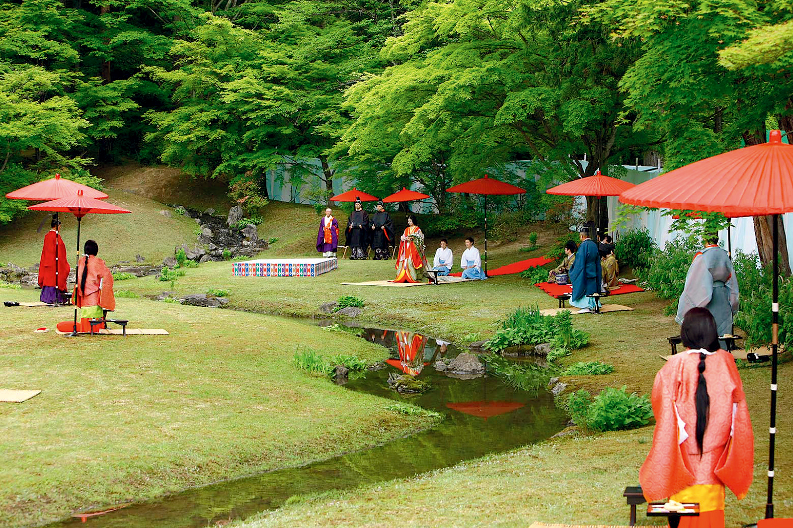 While the great pagodas are gone, the spirit of Motsuji remains in its “Pure Land Garden,” designed to mimic Buddhist paradise. The centerpiece is the Yarimizu, the only winding stream from the Heian period remaining in Japan. Standing by the frozen pond, I imagine the Kyokusui no En (Stream Party). In days past, lords in court dress would sit here, composing poetry before a floating cup of sake reached them. This elegant tradition returns this May, marking the 40th anniversary since its modern revival.