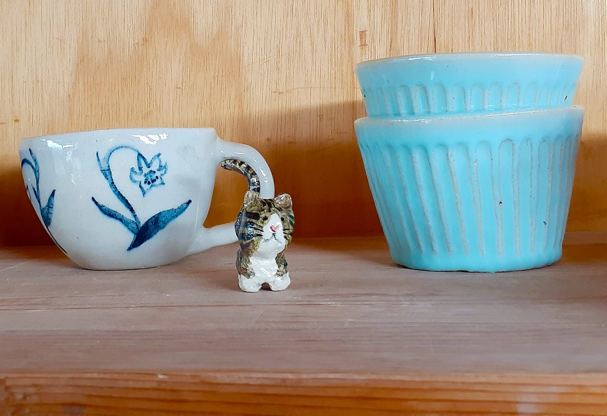 After that, it’s time to choose the type of clay. Participating in a pottery workshop costs ¥500 (a one-time fee charged on only on your first visit), plus the cost of the clay. How much clay will you need? Mrs. Wakako gave me some examples of what you can make: If you purchase five hundred grams, you can make a medium bowl and two or three cups. With a kilogram of clay, you can make about three or four tea cups, or one big bowl. One student even made a figure of Mrs. Wakako’s lovable cat, Torajiro!